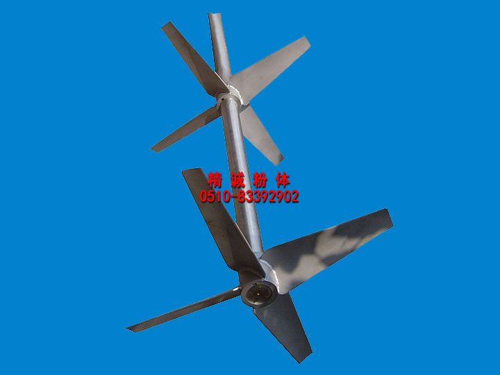 有平槳式和斜槳式兩種。平槳式攪拌器由兩片平直槳葉構成。槳葉直徑與高度之比為 4~10,圓周速度為1.5~3m/s,所產生的徑向液流速度小。斜槳式攪拌器的兩葉相反折轉45°或60°,因而產生軸向液流。槳式攪拌器結構簡單,常用于低粘度液體的混合以及固體微粒的溶解和懸浮。