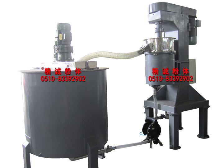 此機組的特點是研磨后可獲得窄的粒度分布。磨介和研磨室的投資較少,但能處理大量物料。料漿可連續監測,其他配方可在研磨過程中隨時加入混合缸中,對于較敏感的成分可在研磨結束之前加入,因為料漿在研磨室中停留時間較短,大部分時間在混合缸中,從而有效的控制其料漿溫度。